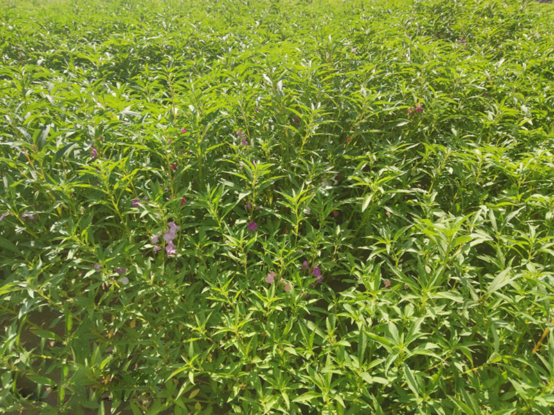 路过这里的人们无不驻足观赏,啧啧称赞,药材种植户刘生云和老伴,戴着草帽在地里忙碌着除草。